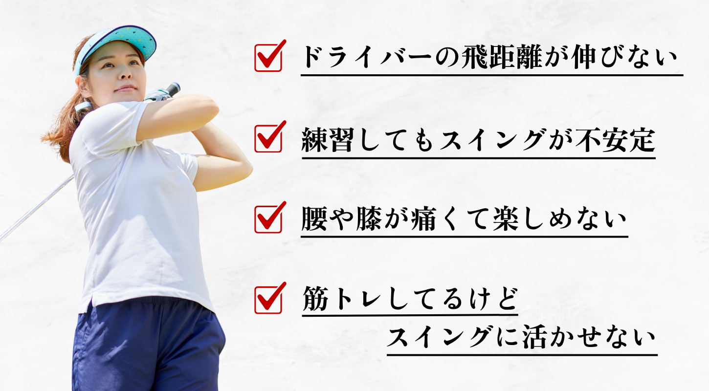 あなたが本来持っている身体に合ったスイングが自然と手に入ることで、ゴルファーに多い腰痛や膝の痛みといった身体の不調を改善・予防し、ゴルフを長く楽しむことができます