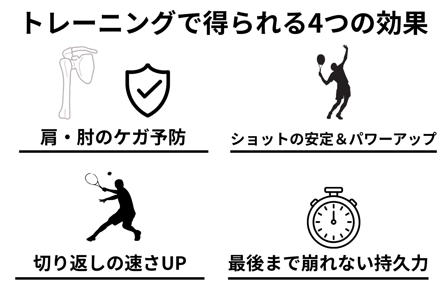 正しいトレーニングを取り入れることで、テニス特有の動作を支える身体機能が向上します。